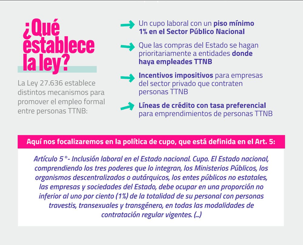 La misma no sólo crea puestos laborales, sino que busca generar condiciones más justas para que puedan acceder a esos trabajos aquellas personas trans, travestis y no binaries (TTNB) más excluidas de la educación y el empleo formal.